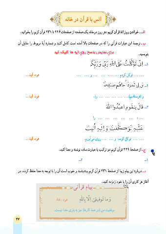 ب ـ ترجم ٔه این عبارات قرآنی را که در صفحات بالا آمده است کامل کنید و شمار ٔه آی ٔه مربوط را مقابل آن